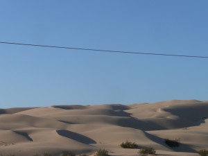 There were few places to refill water, thanks for border patrol officers who end up asking if I need instead of asking for passport as they do when I drive by these check points. The officers turn to be friend and interested on my project but they insist that next day the last day to San Diego it going to be the hardest one they give me the detail of climb and heat. I tend not to go too much into detail and take the surprise but these guys were serious so their advice was to do it earl in the morning. The after become hot as the first day so It took long rest at Imperial Dunes, here I enjoyed simple American kindness two guys stop by to offer cold water and simple chart. What is fun here is there are so many cyclist anyways not at the section I ride or at least not this time of the year but unlikely Latin where you receive lot of attention as foreigner and crazy enough to cycle from one city to another, here you are another guy on the bike.