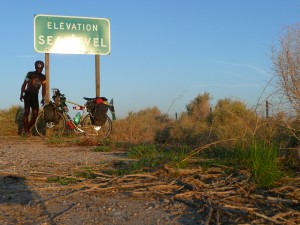 Soon after 5pm I resume pedaling pass the dune which give a good scene when you look behind as the roll down into valley. I crossed El Centro town in the night stop for Pizza and big mug of ice mountain dew. About 16 km out of El Centro I found rest area they don’t allow camping and yes I didn’t camp I just put mattress under the tree and sleep for few hours. I wake up at 4pm and stat the climb, I think it about 25 to 30km of climb, I got up in the pass which is about 1250m, it was 50 Celsius by the time I finished to make my branch of raise, tuna and sweet corn. Going downhill was the reward of the climb, from here the terrain changed into plateau, jugged mountain with valleys in between. The vegetations changed as well slowly the shrubs turn into pines and temperature kept going down. The time I arrived San Diego down town I was cycling under 27 Celsius with cool breeze from the ocean, it was like a dream when I did comparison of where I cycle for couple of few days to here, and this was paradise!